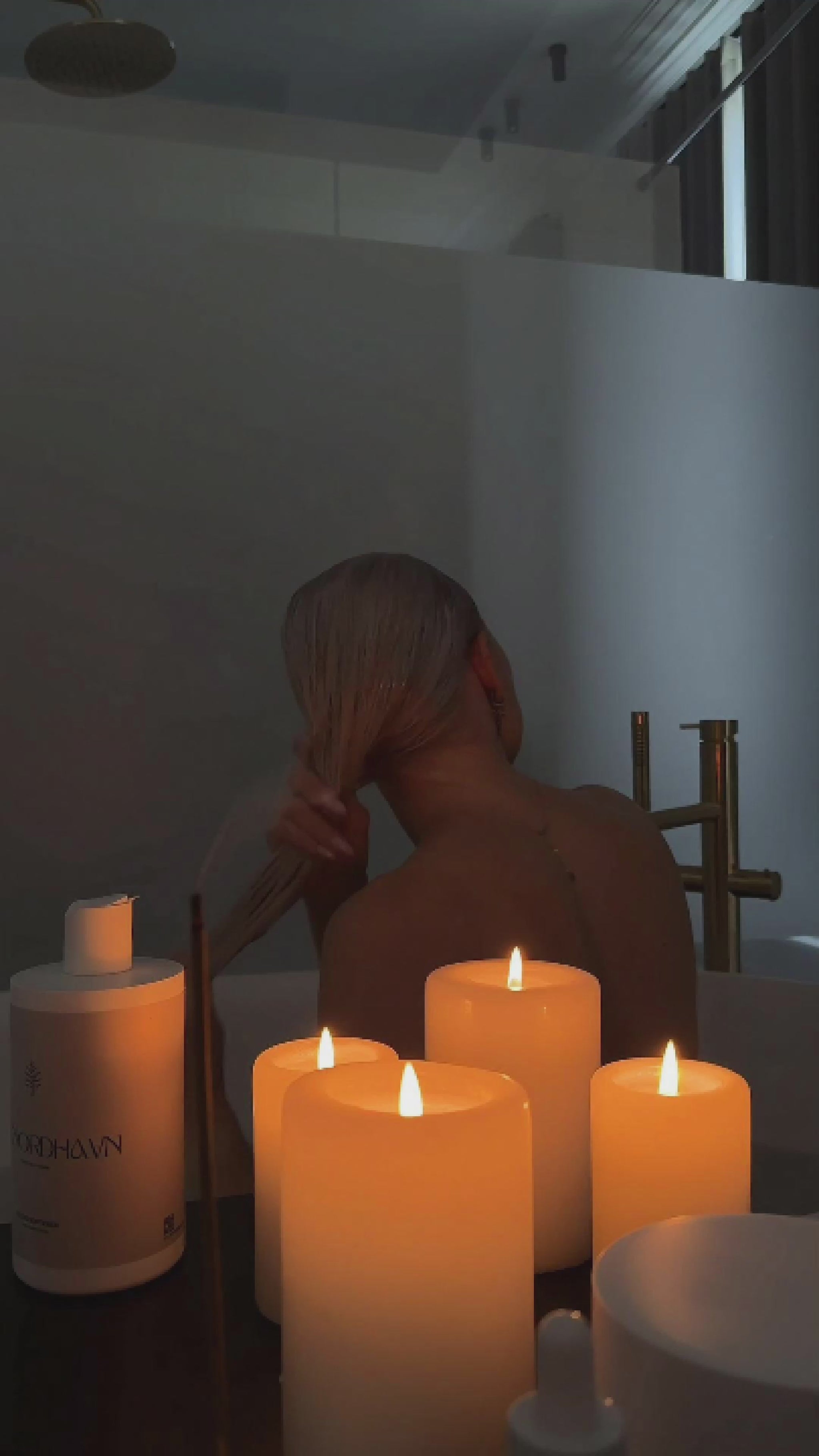 Voor het volledige ritueel met scrub en olie reken je op ongeveer 20 minuten, inclusief inwerktijd. De gewone wasbeurt met shampoo en conditioner duurt 5 à 10 minuten.